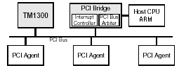本方案采用了SAMSUNG的S3C2510(ARM940T內核)和PHILIPS的Trimedia1300(TM1300) 數字信號處理器,ARM940T內置了PCI2.1規范的總線接口,Trimedia1300可以作為PCI的MASTER和SLAVE,基本架構如圖 -1。